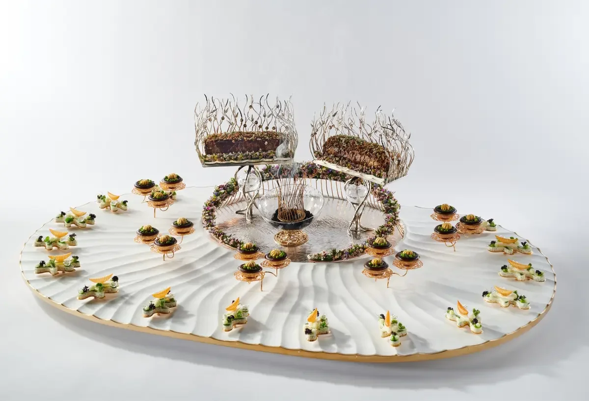 Platter Theme Featuring red gurnard, paired with chickpeas, violet artichokes, and sea urchin — a tribute to the flavors of the Mediterranean coast.