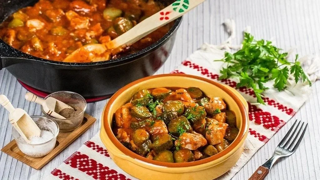 A traditional Romanian dish with an authentic taste, perfect for those who appreciate well-balanced flavors. Tender pieces of pork are slowly cooked in a savory vegetable sauce enriched with spices, while the pickled cucumbers add a pleasant contrast – slightly sour, fresh, and appetizing. It is a comforting, hearty dish full of personality, ideal for cold days or for moments when you crave the true taste of homemade cooking.